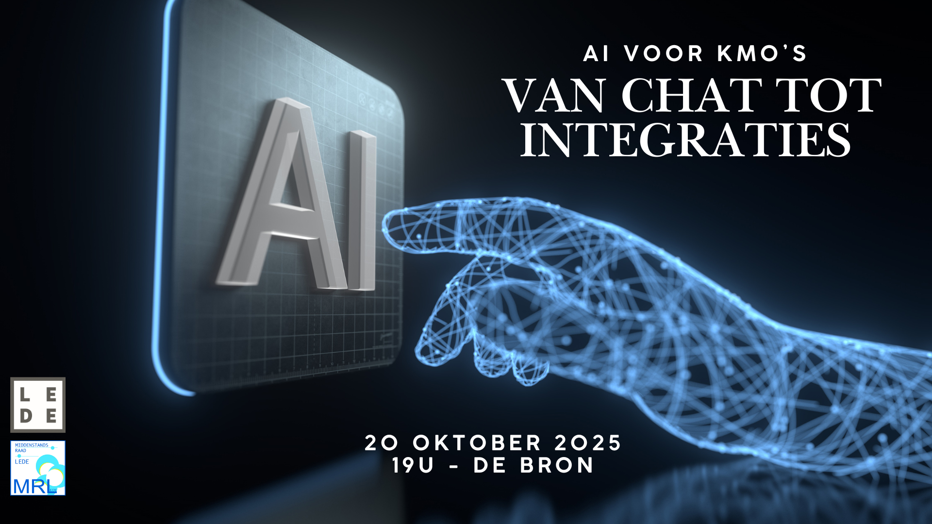 Op maandag 20 oktober 2025 om 19u nodigen we je graag uit in De Bron te Lede voor een gratis inspirerende en praktische sessie: “AI voor KMO’s: van Chat tot Integraties”.